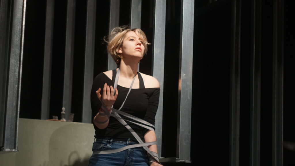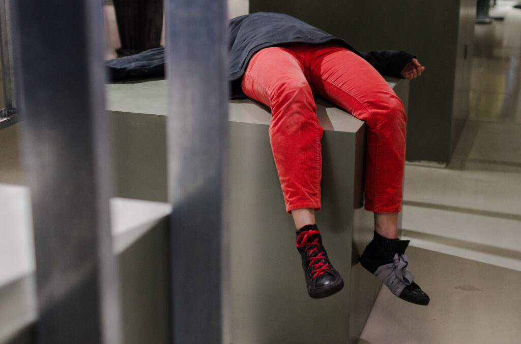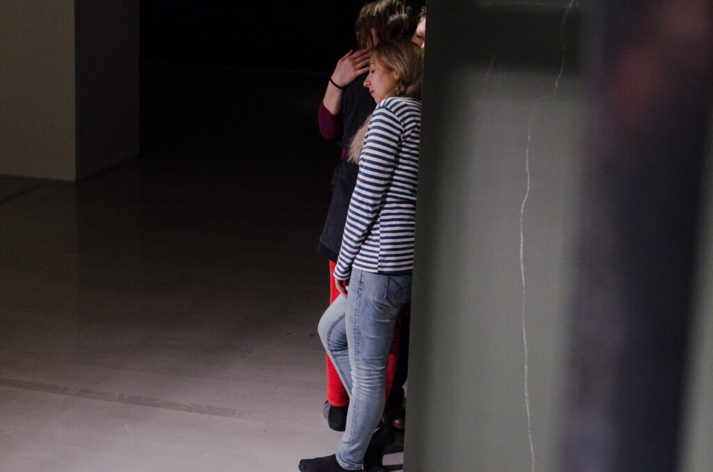 Olga Merekina’s interpretation began with her personal experience of the original performance and its rehearsal process, which she used to uncover hidden layers of interpersonal connection, heightened by the complexity of the performers’ prior experiences. Rather than engaging with the ongoing dynamics between each other and the audience, the performers instead relived and revisited real past events, substituting the original participants with the present ones.